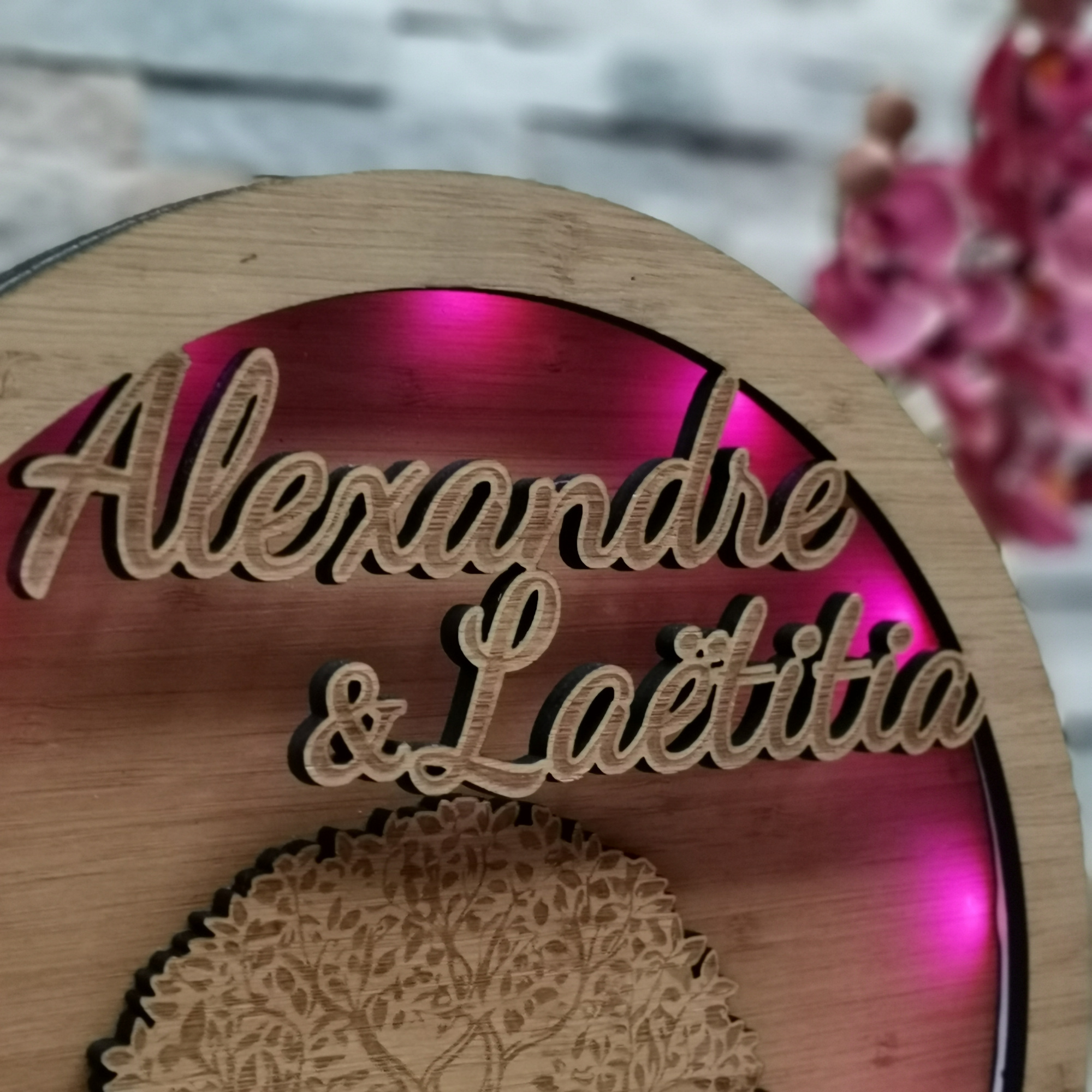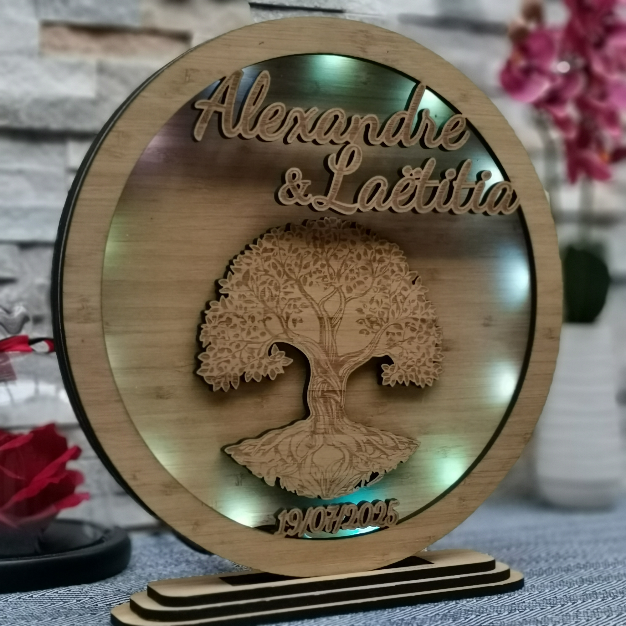 Lampe LED personnalisée en bambou « Décoration Mariage »