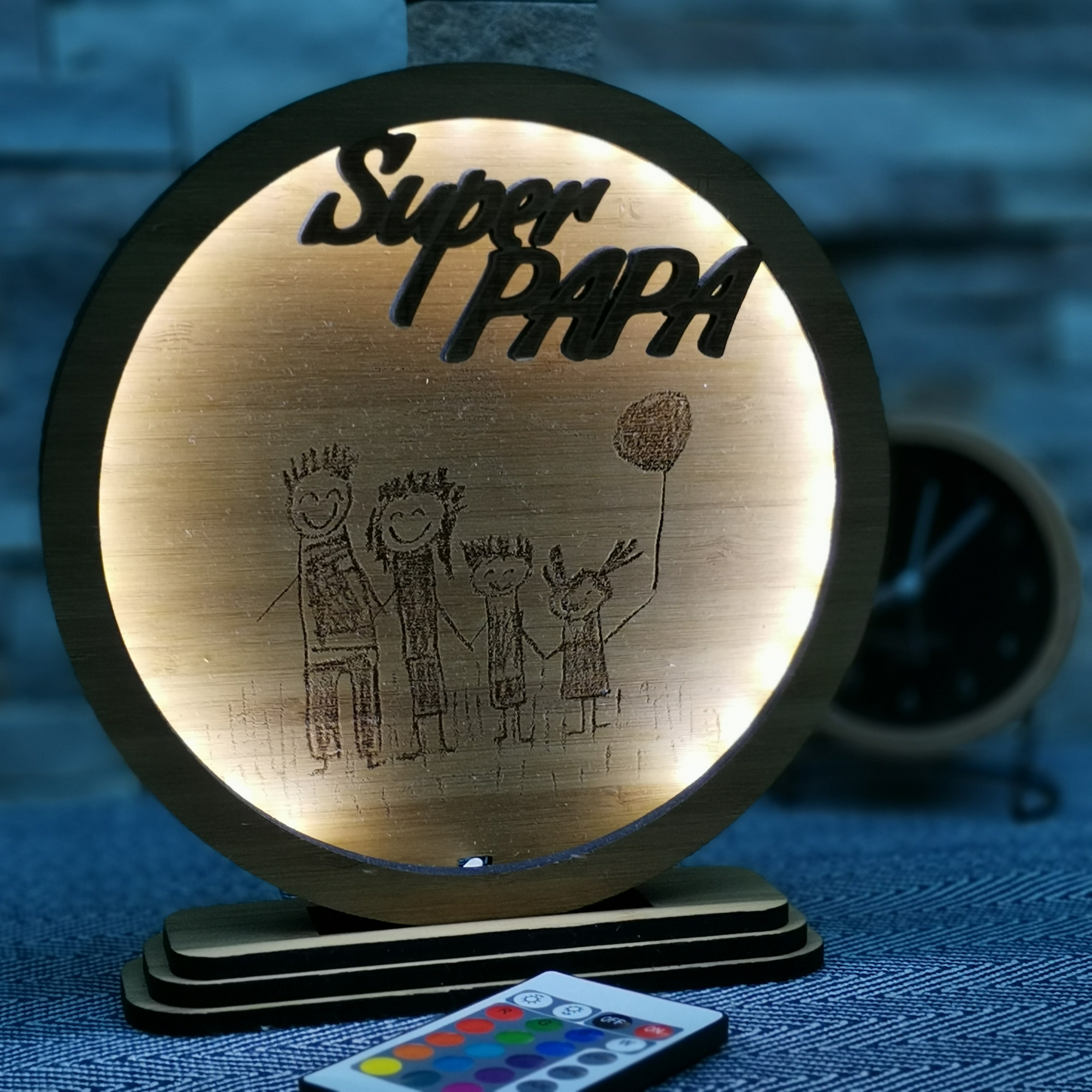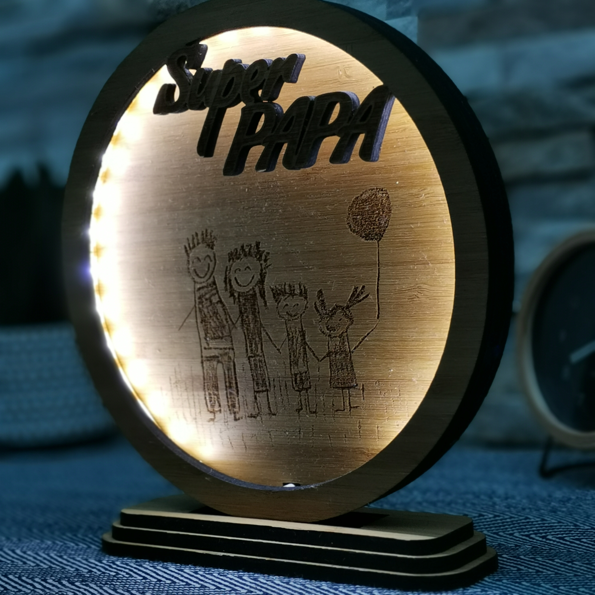 Lampe LED personnalisée en bambou « Dessin d’enfant »