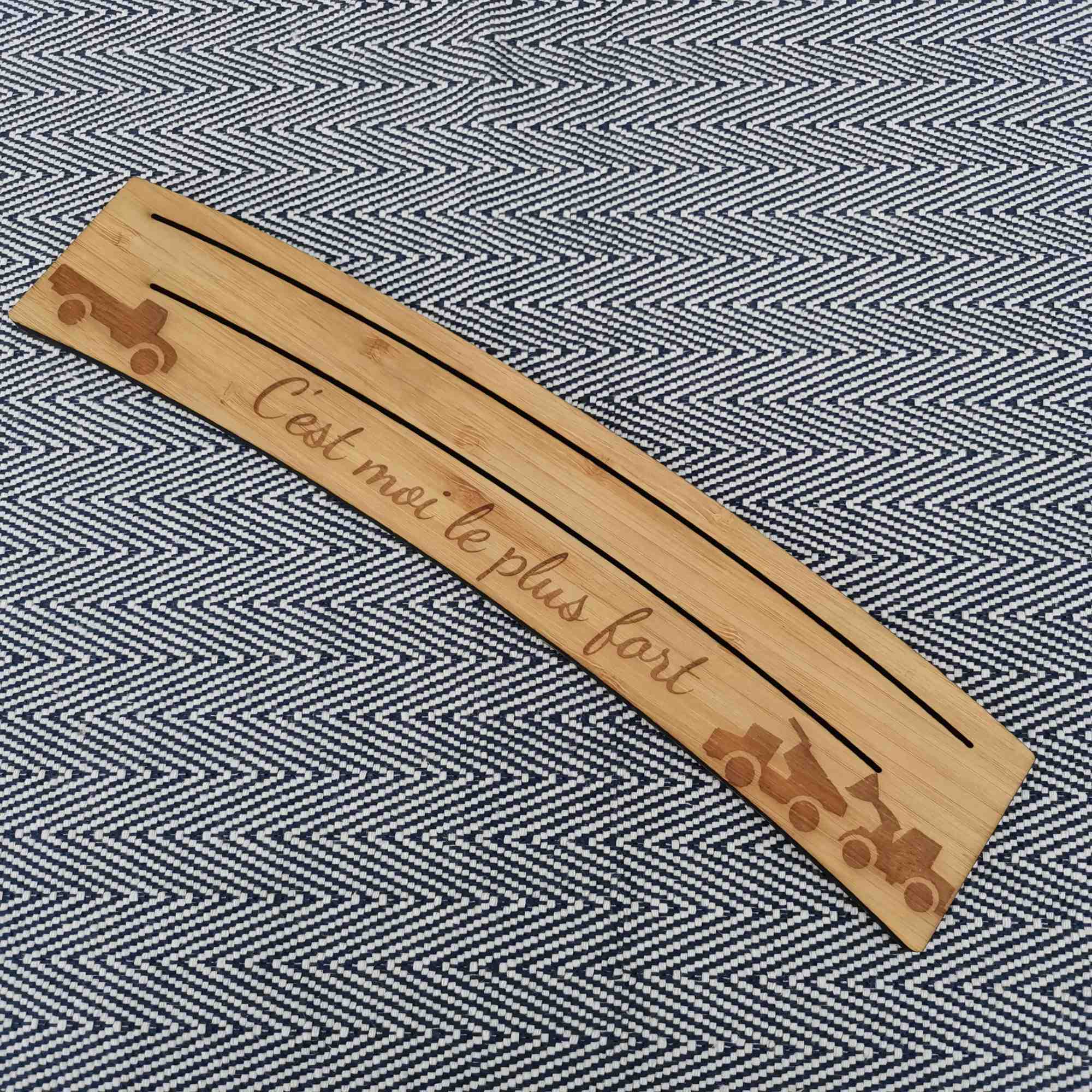 Décoré d’engins de chantier, il peut également être personnalisé avec un prénom, un surnom ou une petite phrase.