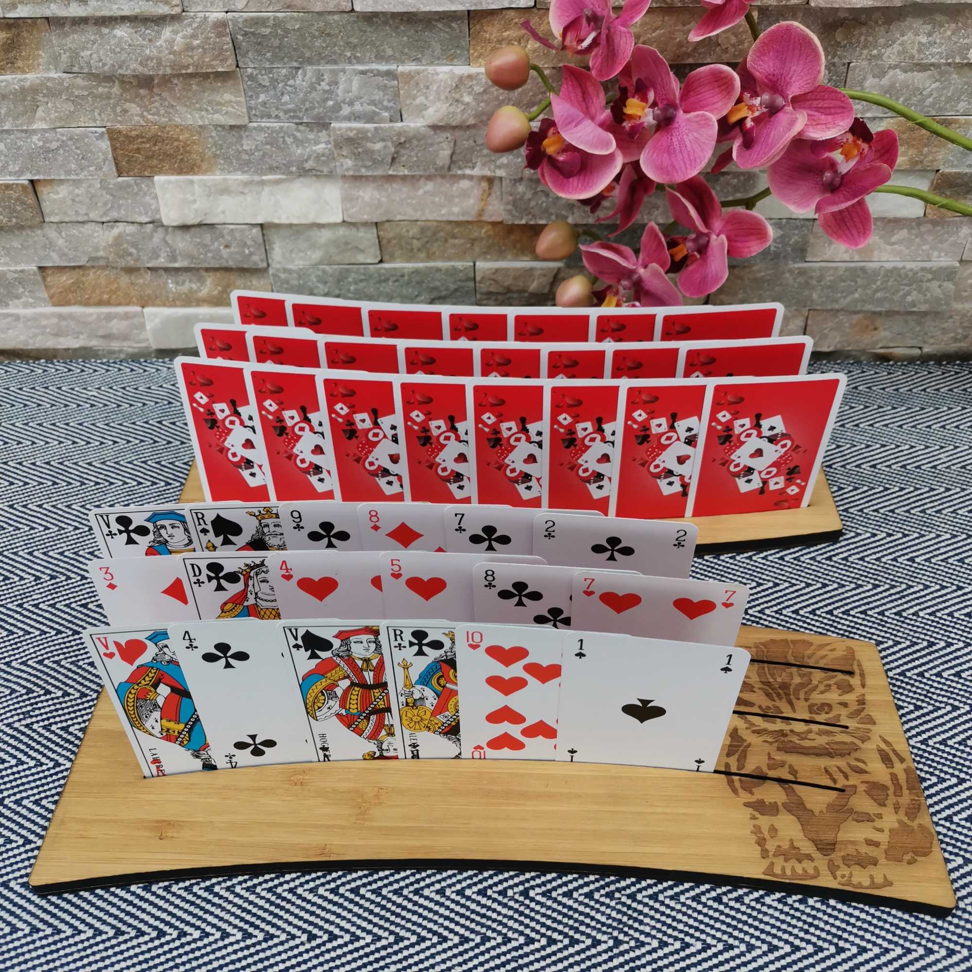 Simplifiez vous la vie avec ce support de jeux de cartes élégant et pratique en contreplaqué de bambou traité à l’huile de lin. Conçu pour les enfants, les seniors et les personnes ayant des difficultés de préhension, il permet de maintenir vos cartes bien en place sans effort. Avec son design incurvé, ce support allie esthétique et confort d’utilisation.