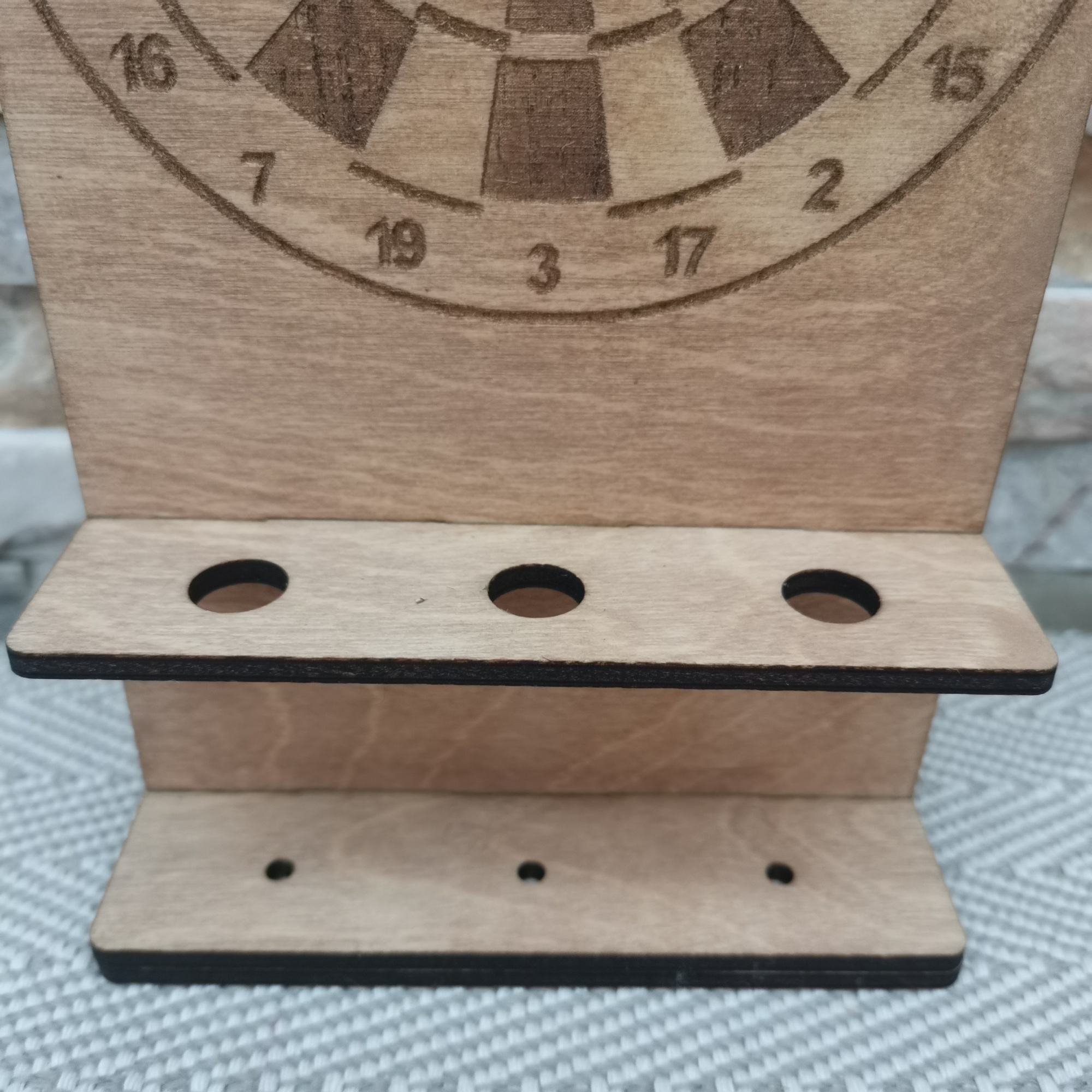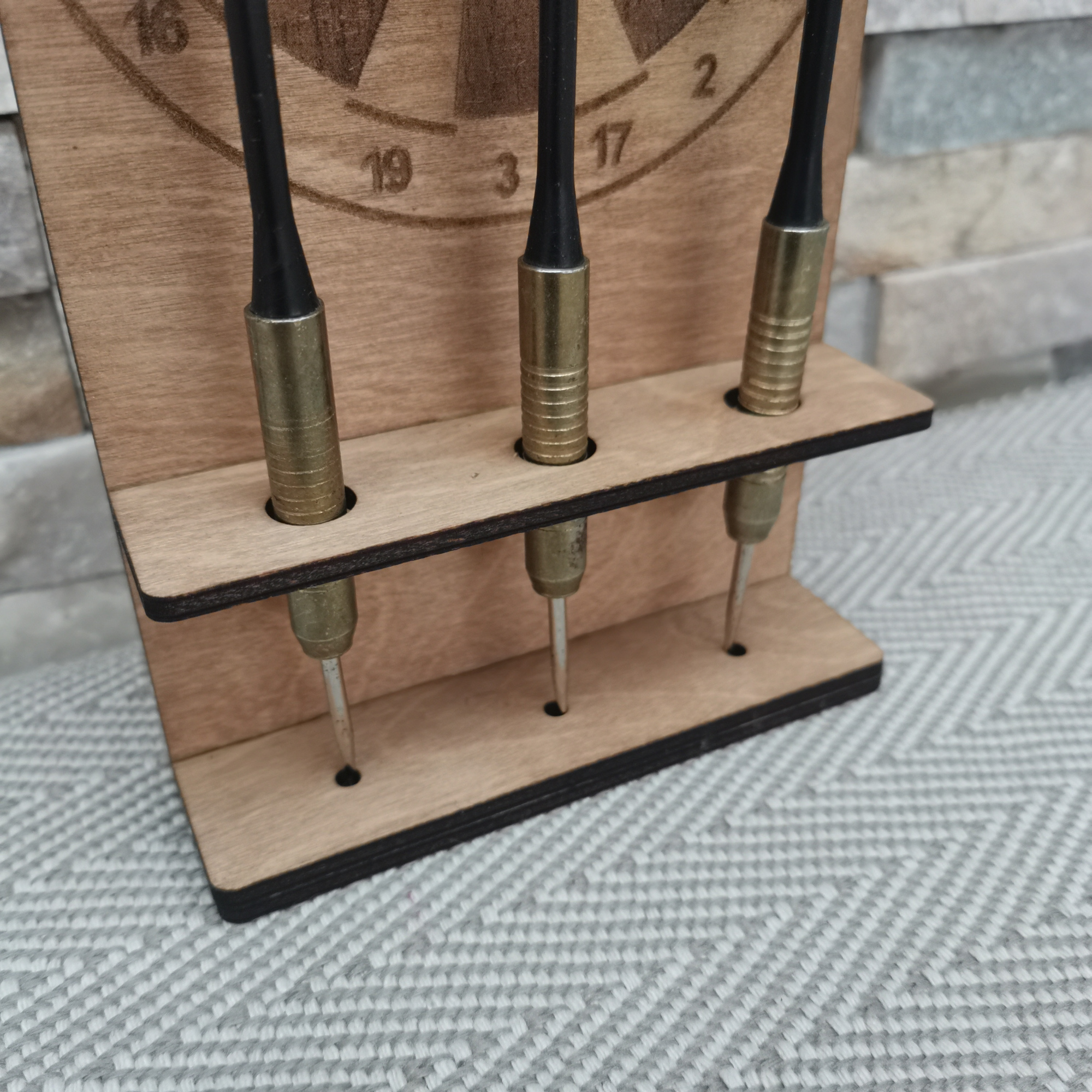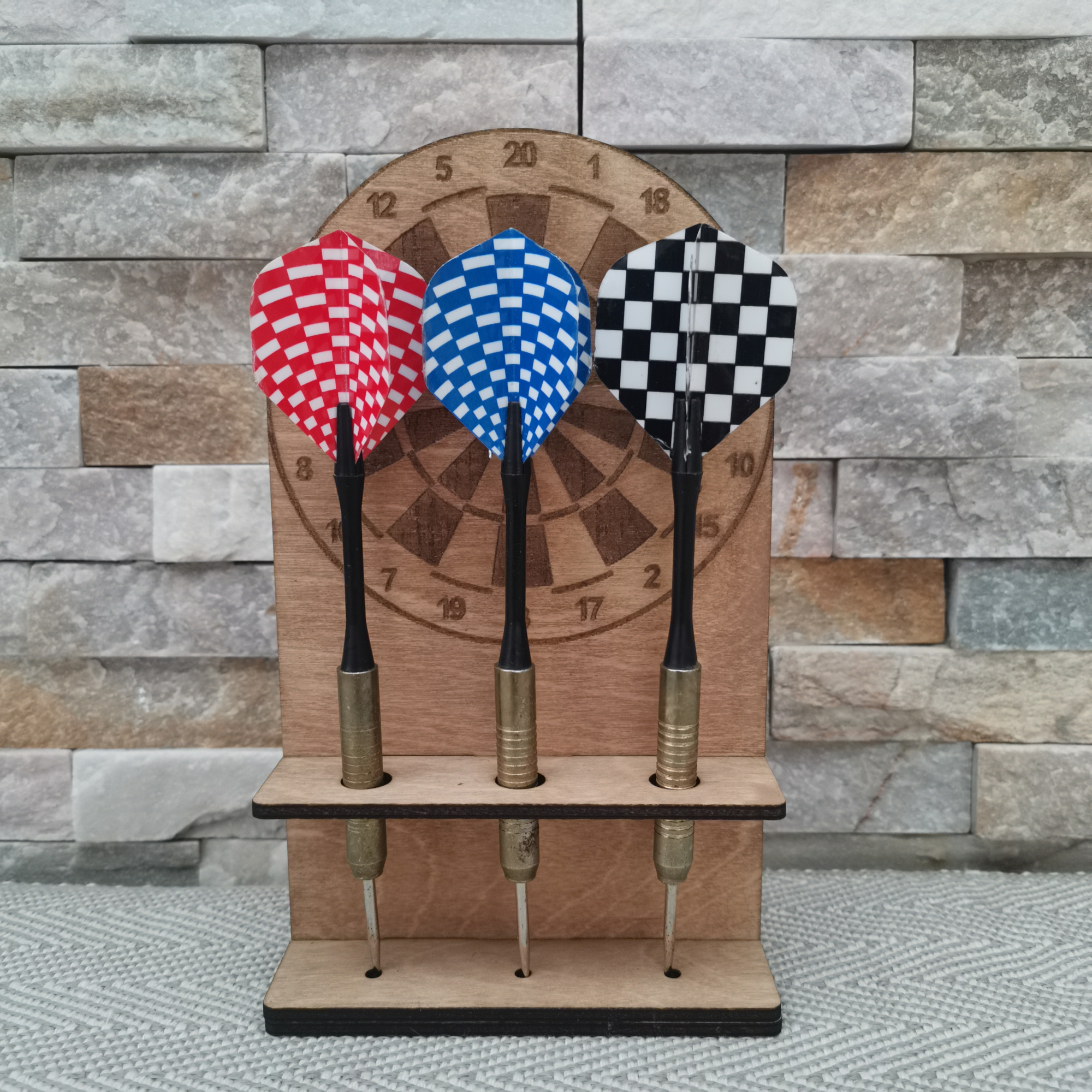 Ce support est conçu pour accueillir 3 fléchettes et les maintenir bien droites, sans les abîmer. Il est stable, compact et trouve facilement sa place près d’une cible.